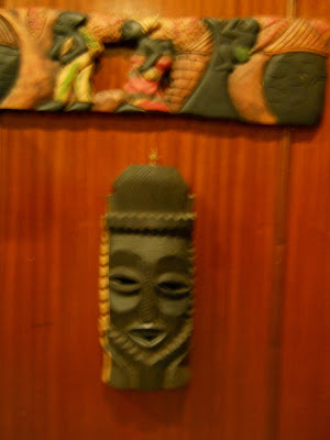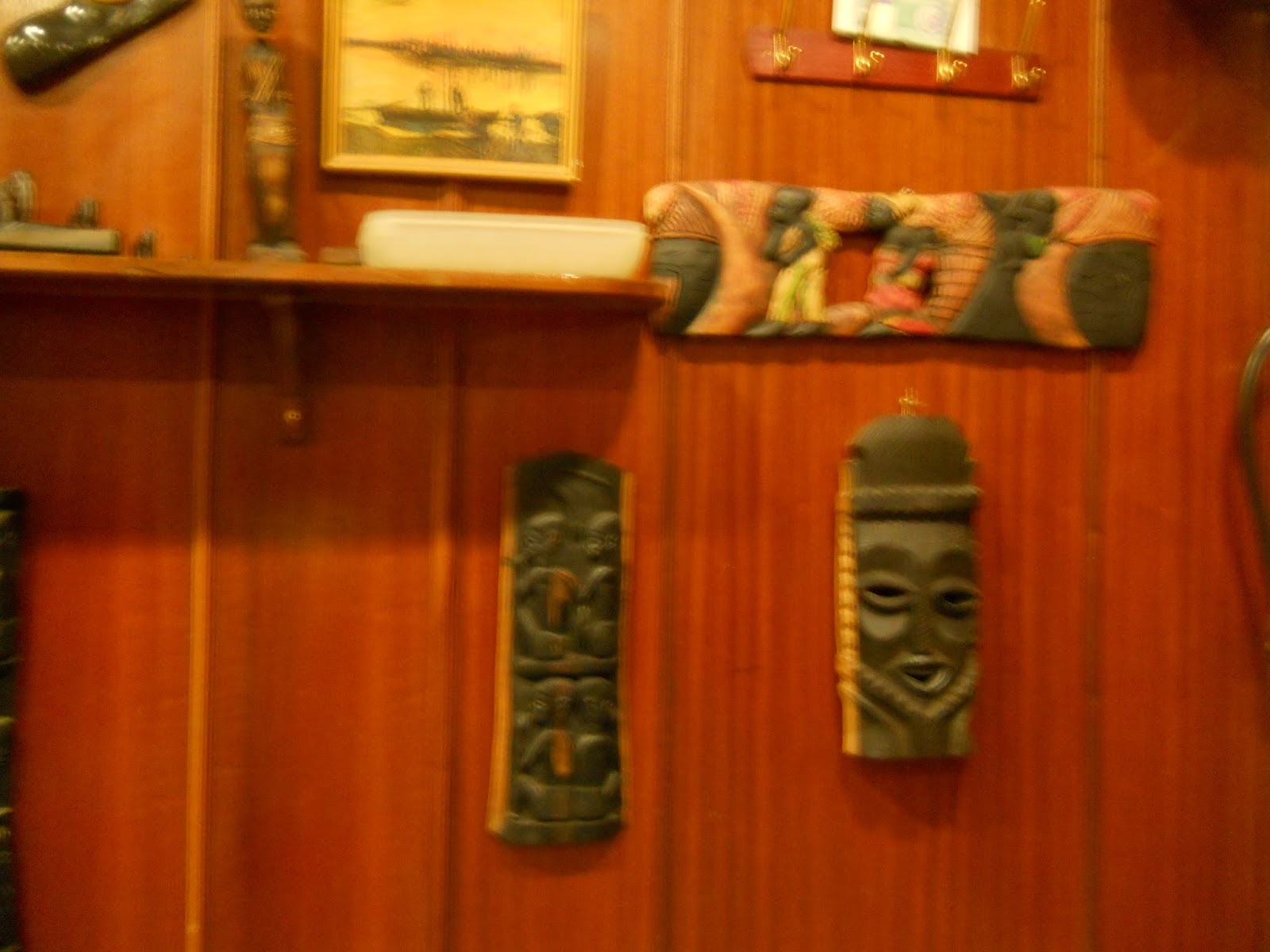Voltei, para colocar mais umas poucas que fiz no espaço destinado ao Bilhar, no mesmo café (esqueci o nome) cujas paredes estão decoradas com objectos de arte indígena, e que eu não me cansava de observar, enquanto uma Senhora ao meu lado vendo o meu interesse, me disse sem reservas que se aquilo fosse dela, punha tudo a arder no forno, porque detestava.