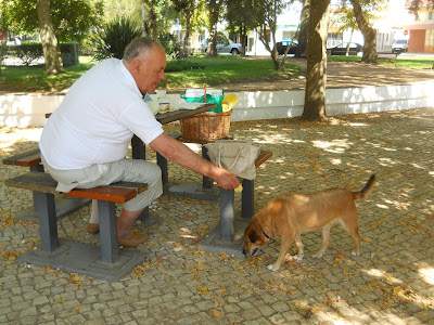 Ficou connosco durante uns minutos só a fazer companhia. Qual seria o seu pensamento em relação a nós? Impossível sabermos, mas acredito que fosse favorável, porque finalmente lá se decidiu, e aceitou petiscar -  pouco depois caminhou decidido, e foi embora, talvez ao encontro do dono...