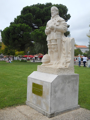 Mas nestas férias decidimos voltar a passar por Rio Maior. E sem pressa passeámos no seu belo Jardim Municipal. É um parque magnifico, cheio de arvoredo. Um lago bonito de grandes dimensões, adornado com jatos de água que se elevam em curvas graciosas, prende-nos a atenção; um café acolhedor... mas também algumas estátuas de notáveis que mereceram a homenagem dos naturais de Rio Maior, povoam aquele "oásis."