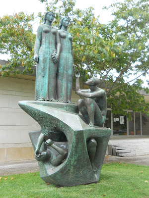 Caminhando naquela profusão de verdes que tanto aprecio, parei junto a uma outra estátua, esta em frente ao Tribunal Judicial, (no mesmo Jardim) uma obra notável muito mais grandiosa, do que as que tinha observado antes.