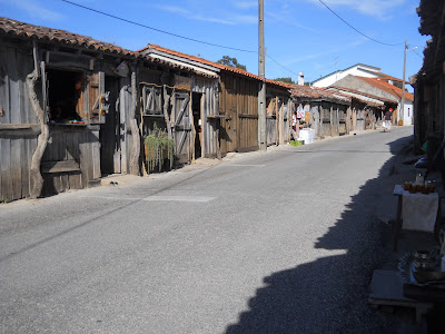 Os pequenos armazéns doutrora - onde cada salineiro guardava o seu precioso sal. Construções totalmente em madeira, até as fechaduras das portas. Alguns troncos de oliveira não aparelhados também eram matéria prima utilizada.