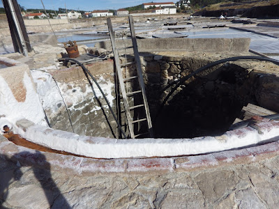 O pôço de onde é bombeada a água salgada. Tem nove metros de profundidade e perto de quatro de diâmetro. A escada e cordas sempre presentes para socorro, ou mesmo para que o acidentado possa sair por seus próprios meios.